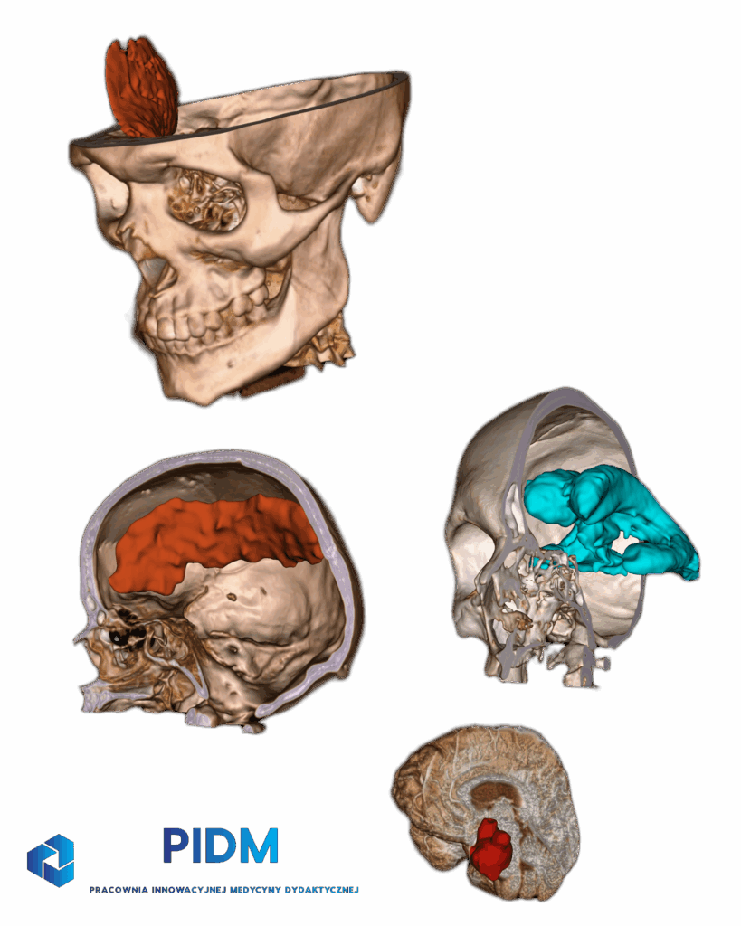 W związku z ograniczonym dostępem do wysoce dokładnych modeli anatomicznych (poza jednostkami PUM) przygotowaliśmy anatomiczną czaszkę na bazie badania tomografii komputerowej. Po zakończeniu prac związanych z aspektem dydaktycznym, wyprodukujemy oraz udostępnimy do wypożyczenia 50 sztuk opracowanego modelu.