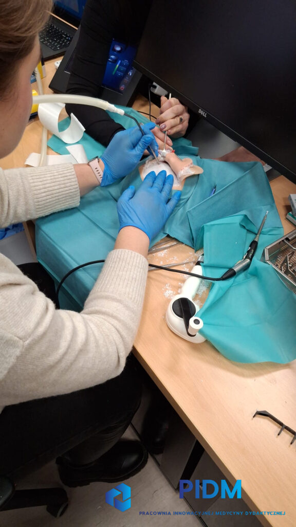 Uczestnicy musieli wykonać precyzyjne cięcie oraz prawidłowo wyseparować żyły, tętnice i okoliczne tkanki, aby uzyskać dostęp do miejsca trepanacji czaszki. Realistyczne modele stworzone na bazie TK i RMi umożliwiły ćwiczenie kluczowych technik, takich jak kontrola krwawienia i manipulacja delikatnymi strukturami anatomicznymi.