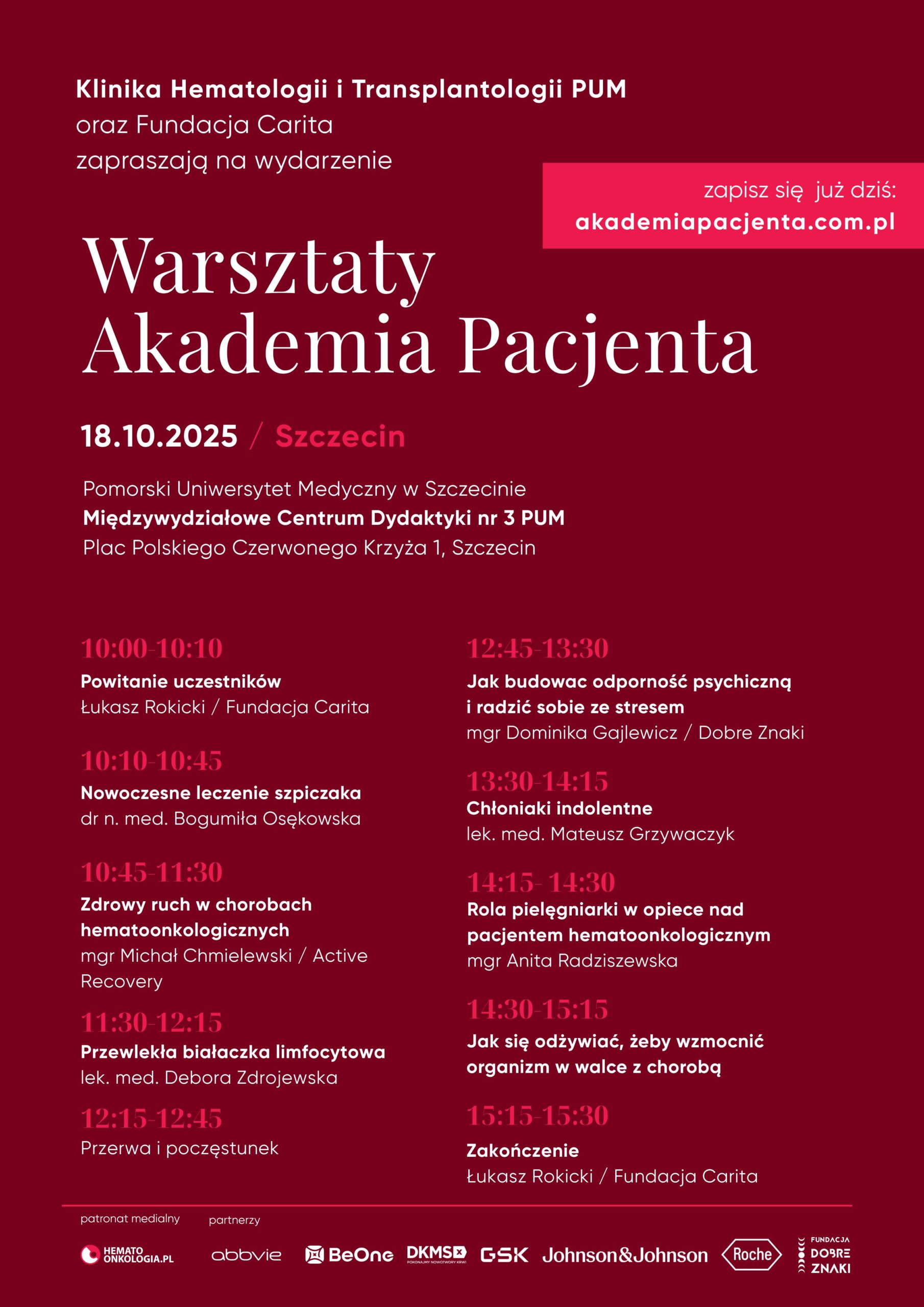 Klinika Hematologii i Transplantologii PUM oraz Fundacja Carita zapraszają na warsztaty Akademia Pacjenta.