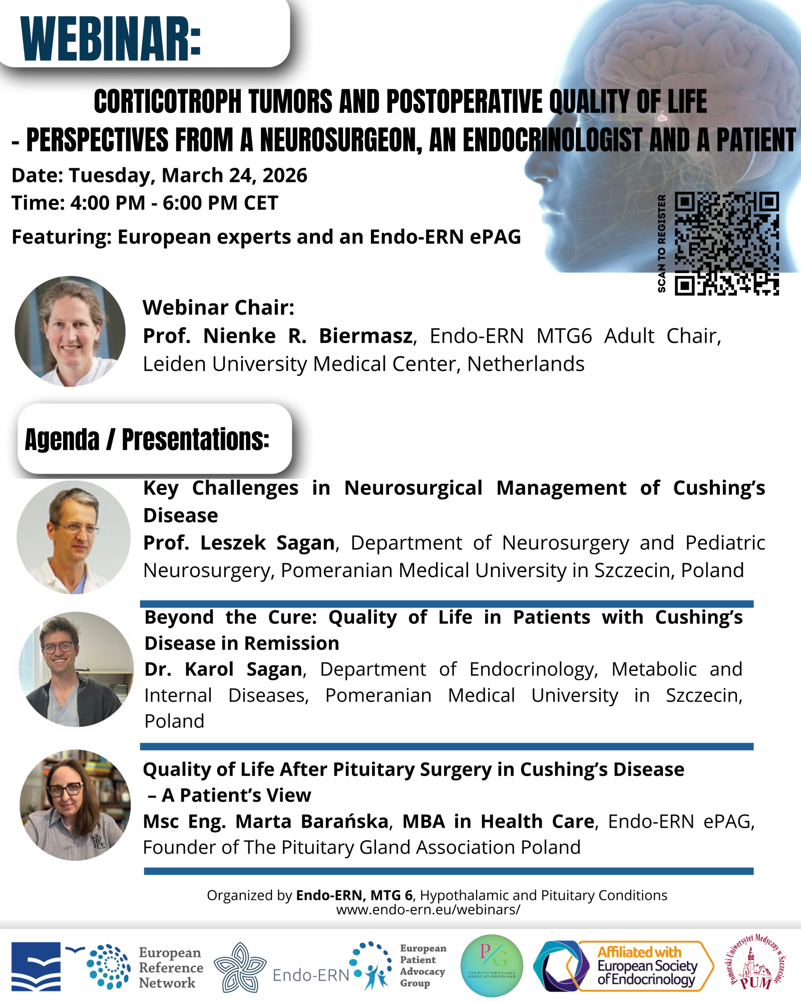 Webinar będzie stanowił forum wymiany wiedzy klinicznej oraz doświadczeń dotyczących leczenia i długoterminowych następstw choroby Cushinga, ze szczególnym uwzględnieniem jakości życia pacjentów po leczeniu operacyjnym guzów kortykotropowych.